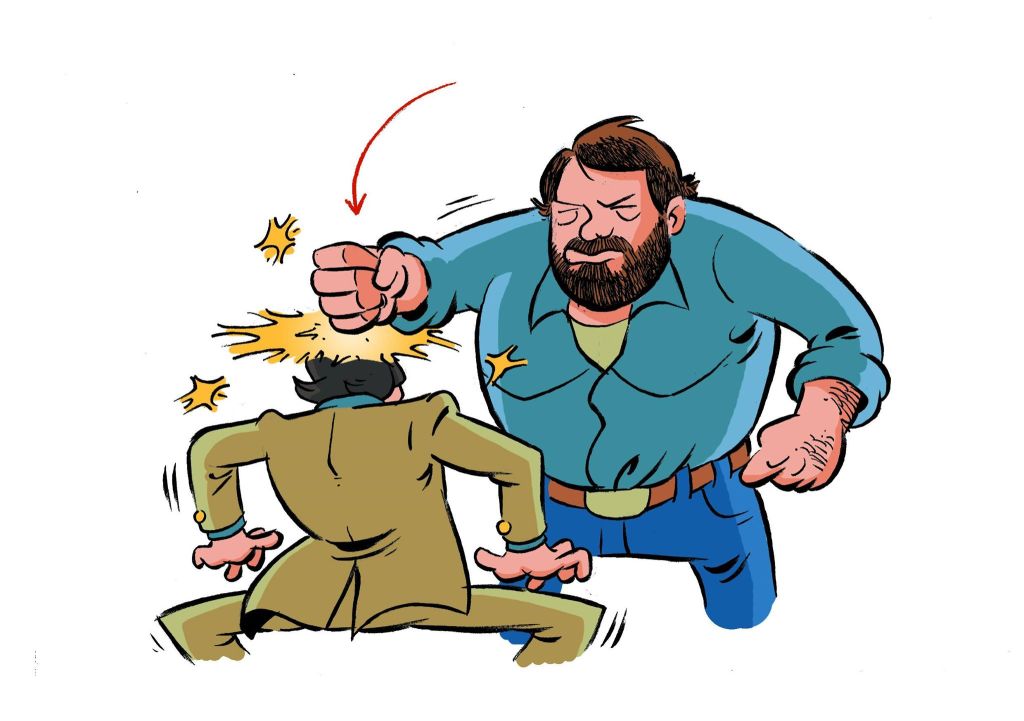 Ilustración de Alberto Peral para ¡Más fuerte, muchachos! El cine de Bud Spencer & Terence Hill, de Daniel Lorenzo