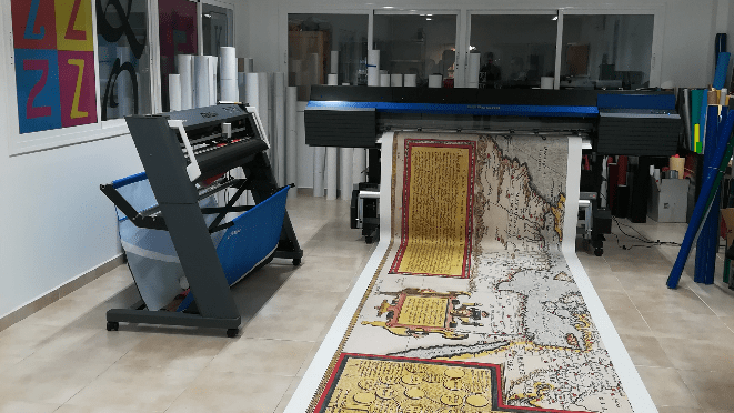 —Hay varios tipos de máquinas como los plotters, que pueden imprimir sobre muchos tipos de materiales: vinilos, telas, lienzos, láminas de corcho, imán, etc… Y las máquinas de impresión en plano que imprimen sobre materiales rígidos como pvc, madera, aluminio, metacrilato, etc… Cada día hay una tecnología nueva al alcance de los impresores, y estar al día es complicado, aunque también forma parte de nuestro trabajo poner a disposición de los clientes la mayor oferta posible.